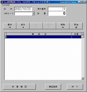 ・薬品バーコードを読ませずに、計量を開始すると「薬品未選択」とPCが注意を発します。